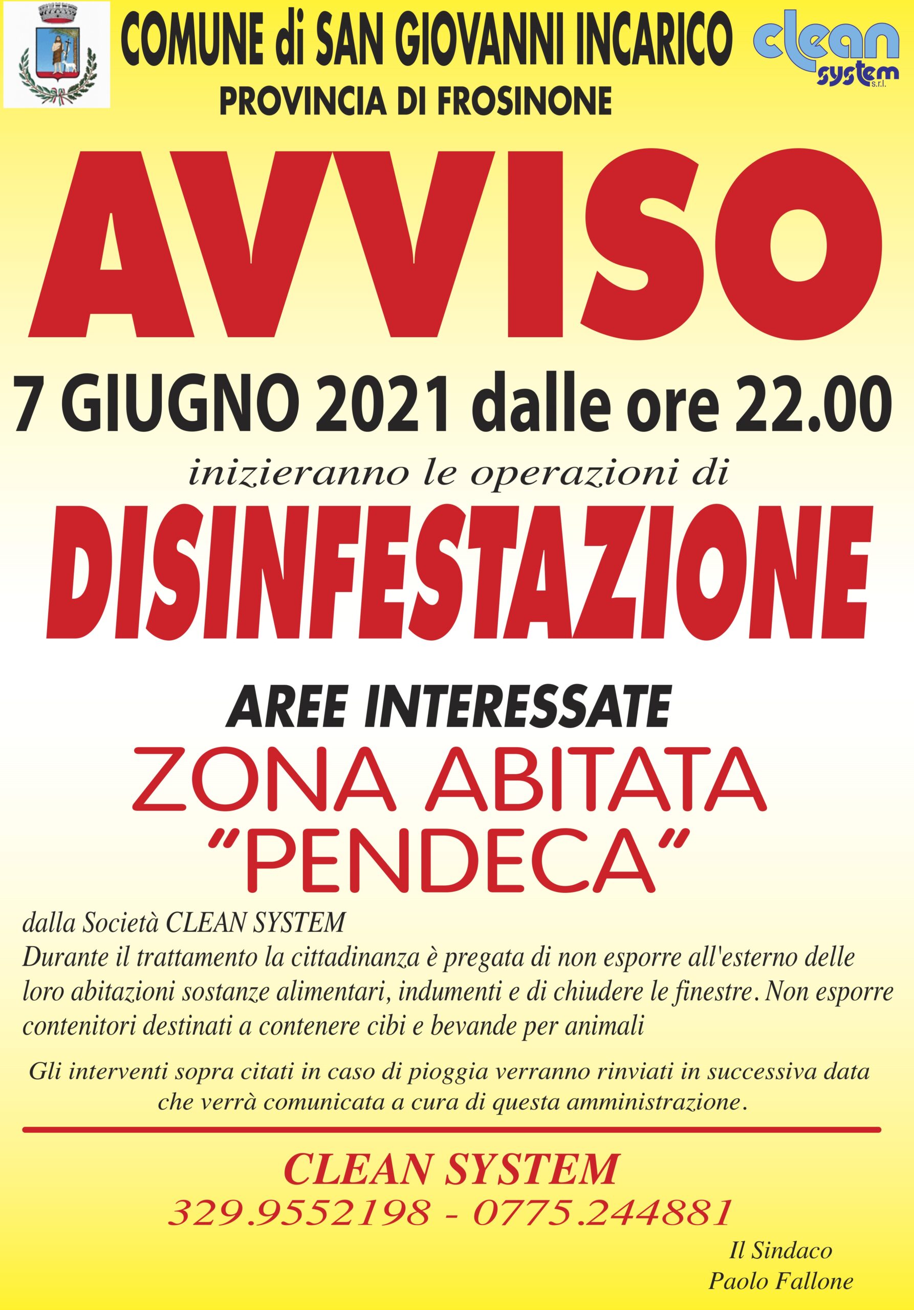 Avviso – Disinfestazione