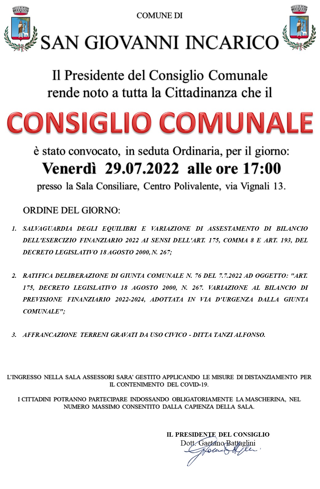 Convocazione Consiglio Comunale – Seduta Ordinaria