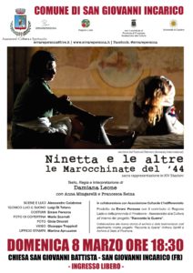 A causa dell'emergenza Coronavirus lo spettacolo teatrale: "NINETTA E LE ALTRE" - Le Marocchinate del '44 -  diretto da Damiana Leone, previsto per domenica 8 marzo nella Chiesa parrocchiale è stato rinviato a data da destinare.